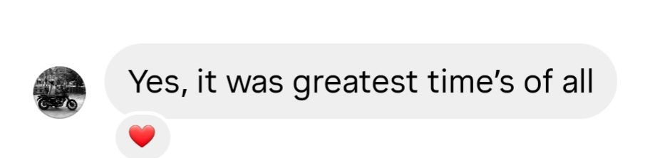 “Yes, it was greatest time's of all”